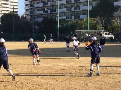 グラウンドでは、野球部・サッカー部・ソフトボール部・陸上部が、場所をお互いに譲り合いながら、元気に練習しています。