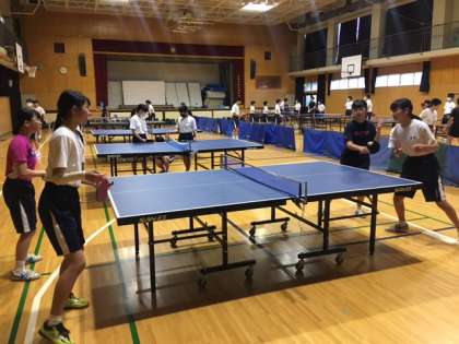 体育館では、今日の午前中は卓球部が全面使っています。クラブ数が多くて、なかなか全面を使える日がない状況です。