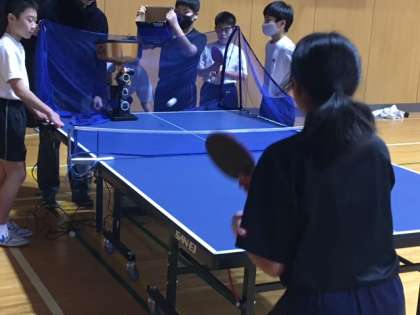 卓球部は60名を超える部員数です。今日は新しく導入した球出しマシーン「ロボッチャ」をお初で使用しました。