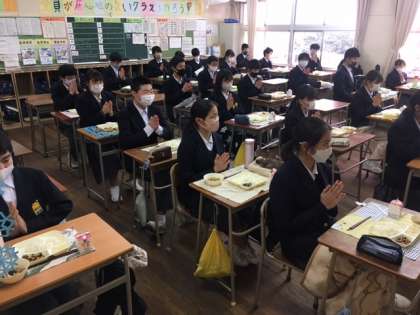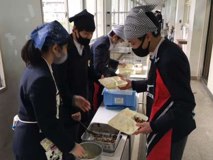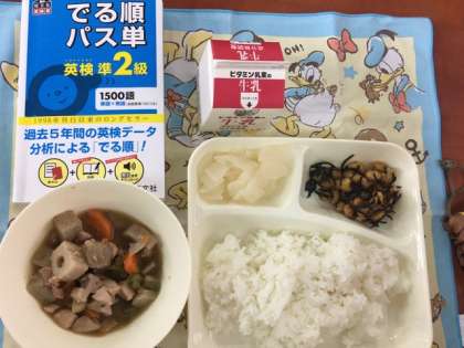 今日の給食献立は、ご飯・筑前煮・ひじき豆・大根のゆず風味・牛乳です。