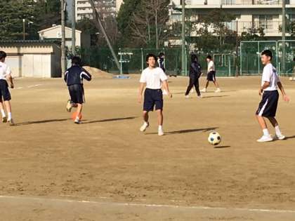 男子はグラウンドでサッカーです。少し暖かくなったので、気持ちよさそうに走っています。