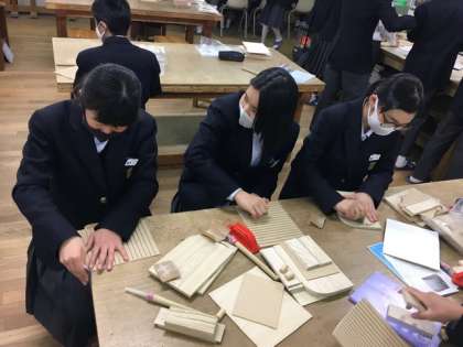作っている生徒に「何を入れるの?」と訊くと、「ペンとかの文房具」、「小物」、「大事なもの」と返ってきました。