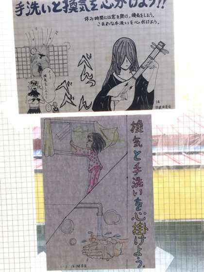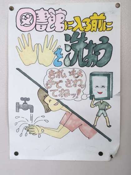 生徒会の委員会活動で制作したポスターが、色々と校内に貼られてあります。