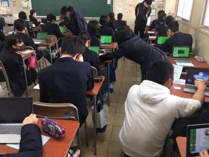 先週1年生で行ったティームズの接続実験を、今日の午後に2年生と3年生で行いました。