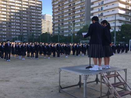 今日は火曜日ですが、昨日が雨天で集会ができなかったので、全校集会を行いました。