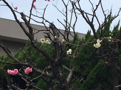 きれいな紅白梅の色が、気持ちを温かくしてくれます。