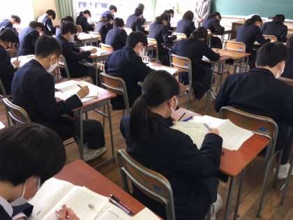 1・2年生の学年末テスト、2日めです。今日は、国語・理科・技術家庭科です。