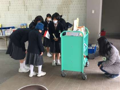 学活や掃除の終わった生徒が三々五々集まってきます。昨日並べてなかった本もたくさん追加されて、どんどん持って帰ってくれています。