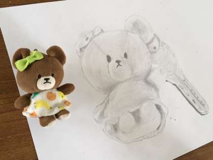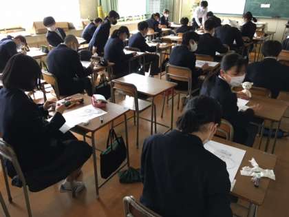 「思い出の物をデッサンする」という命題です。みんな、ほんとに上手に描けています。前から思ってますが、友渕中の子は、みんな絵が上手です。集中力か絵心か、何でしょうね。
