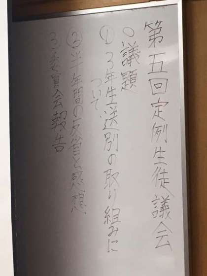 最初に3年生送別会関係の取組みについてのことがありましたが、これはまだ内緒ですので書けません。