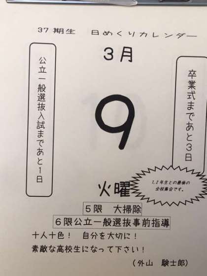 明日、入試。 卒業まで、あと3日。
