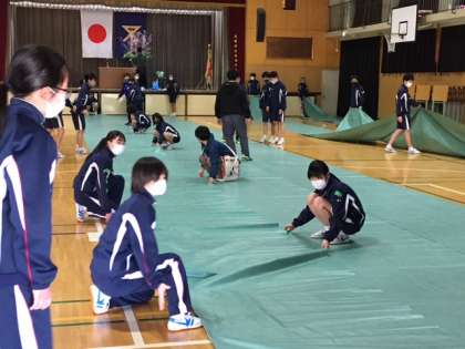 体育館はきれいにマットを敷いて、きれいに椅子を並べます。