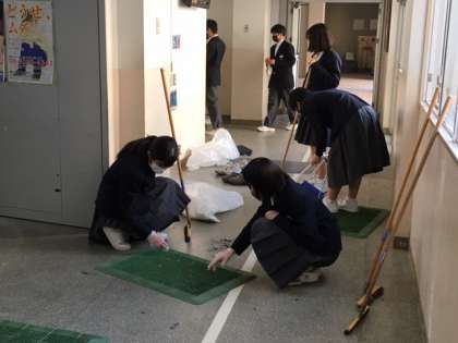 午後からは、在校生で手分けして、卒業式に向けての大清掃と式場準備です。