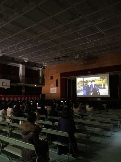 その間、保護者の皆さんには、昨日3年生が観た「3年間の軌跡」を観ていただきました。