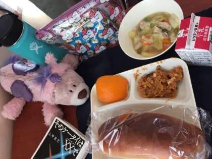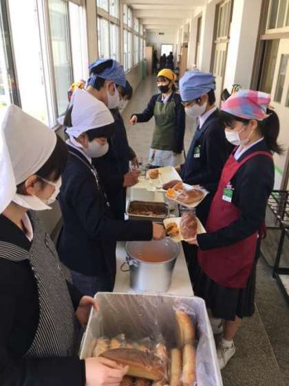 今日の給食献立は、黒糖パン・豆腐のミートグラタン・押麦と野菜のスープ煮・デコポン・牛乳です。