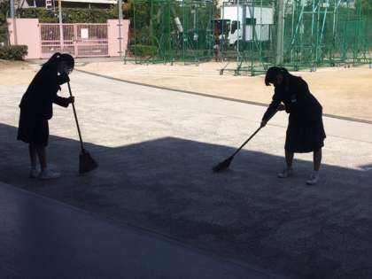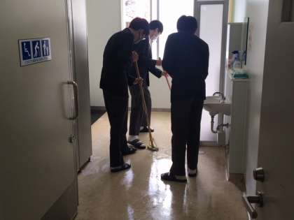 1年間お世話になった教室や廊下・トイレ等々に、感謝の気持ちを込めて清掃します。生徒たちは、本気で熱心に掃除をします。