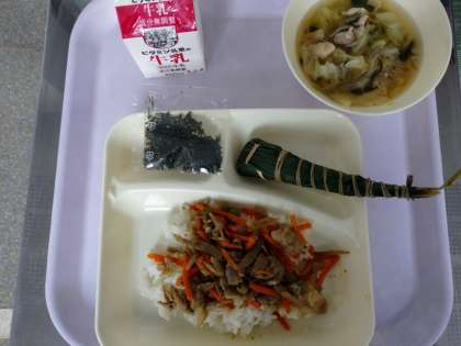 きんぴらちらし すまし汁 ちまき 牛乳 です。
