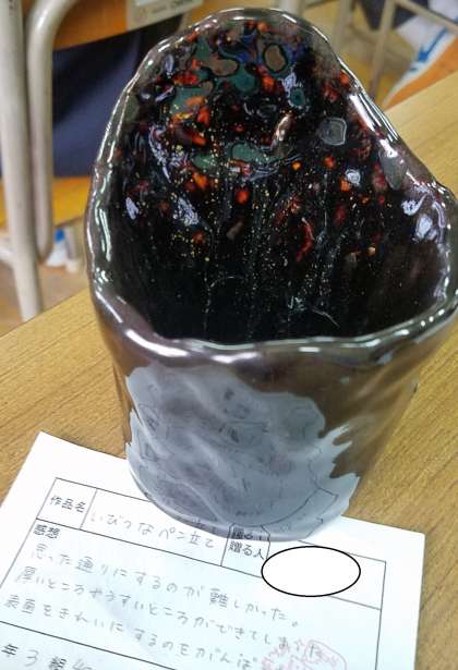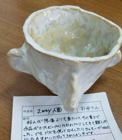 デザインを考えて、作陶は3時間で仕上げます。大変でしたが、なかなか素敵な作品が完成して昨年度末には返却しました。