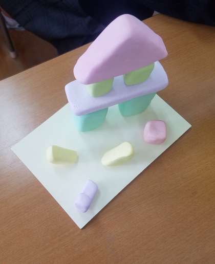 2年生が昨年度の1年生の3学期に「生活の中で誰かが使う道具のデザインの模型」を制作しました。