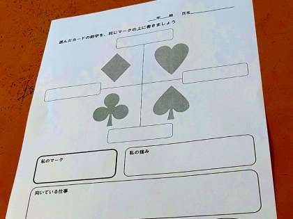 13日(木)、2年生はゲストティーチャーを招き、SP(サブ・パーソナリティ)トランプという教材を使って《進路学習》を行いました。