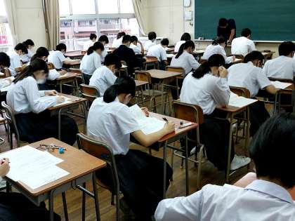 午前中は国語・数学の2教科の調査を行い、午後からは、生徒質問紙に回答しました。久しぶりのテスト形式での調査となり、みんな緊張して取り組んでいたように感じました。