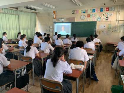 今回は密を避けるため、事前に撮影した動画を教室で視聴する形式で立会演説会を実施しました。