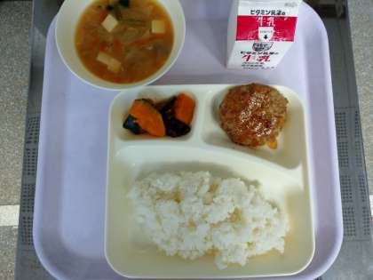 とうふのみそ汁 かぼちゃのいとこ煮 牛乳  です。