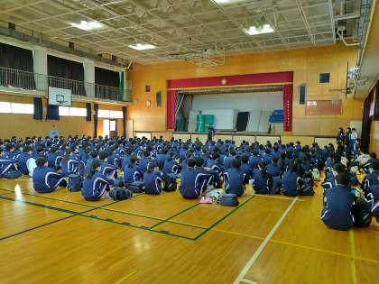 体育館で整列し、修学旅行委員を中心に出発式が行われました。