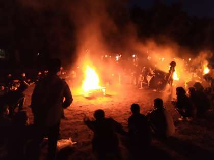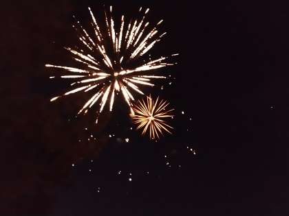 キャンプファイアーのあと迫力のある大きな花火が夜空にあがりました。