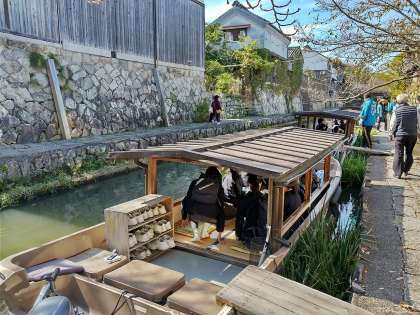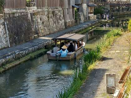 八幡堀めぐりに風情のある屋形船で出発〜!