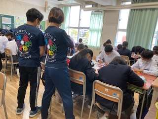 2年生の先生たちも一致団結。教員で力を合わせて学年Tシャツを作りました。オリジナルTシャツでそろって文化祭取り組みです。Tシャツの模様は教員みんなで考えました。