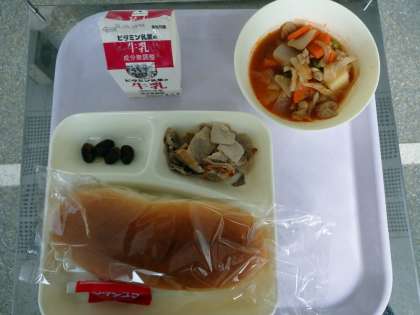 ケチャップ煮 うずら豆のグラッセ 牛乳  です。