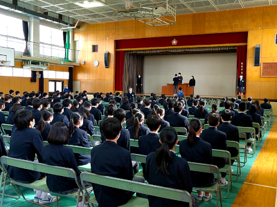 11日(金)の卒業式に向けて、3年生の練習が始まりました。式次第は短縮して行われますが、《最後の仕上げ》にむけて、さまざまな所作や返事のタイミング、動きを確認しています。