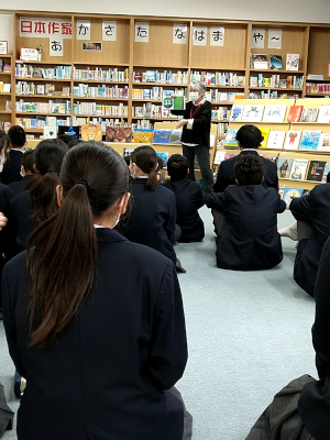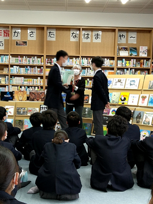 1年の国語の時間に講師の先生においでいただき、《絵の本広場》を行っています。講師の先生は、中学校・高校・大学でも絵の本広場の活動をされています。