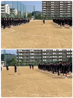 今日は、2・3年生はクラス発表があり、そのあと全学年の子どもたちがそろって