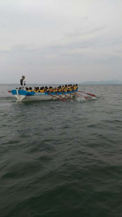 なかなか呼吸が合いません。 湖面にイチニーという声が響いています。