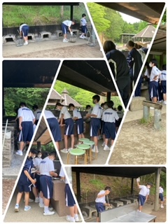 食事の後は、後片付けです。来た時よりきれいにすることを目標にがんばってます!
