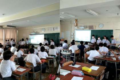 班ごとに作成されたパワーポイント資料を使って、見学し調べたことについて報告しました。