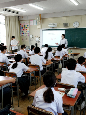 6日(水)と7日(木)、2年生はゲストティーチャーを招き、SP(サブ・パーソナリティ)トランプという教材を使って《進路学習》を行っています。
