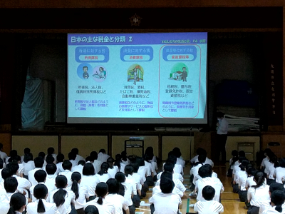 6日(水)、3年生はゲストティーチャーをお招きし、《租税教室》を実施しました。