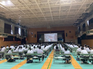 8月5日(金)の午前、2年生は学年登校日でした。8月6日は広島に原子爆弾を投下されてから77年目を迎えます。本日は「ヒバクシャからの手紙」の映像を見ながら平和の大切さ、生命の尊さを学びました。