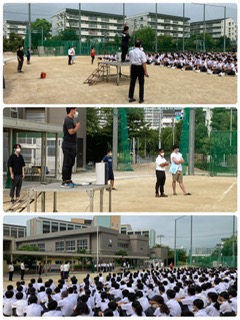引き続き全校集会を行い、夏季休業中の部活動の表彰を行いました。