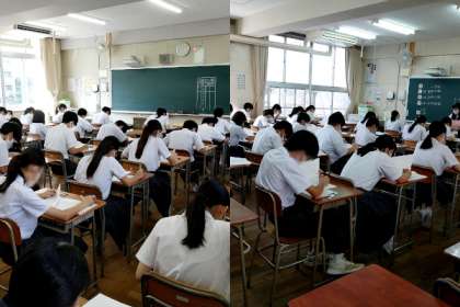 国語・社会・数学・理科・英語について各45分のテストでしたが、みんな真剣な表情で取り組んでいました。