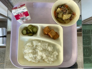 肉じゃが あつあげのみそだれかけ きゅうりのゆずの香あえ