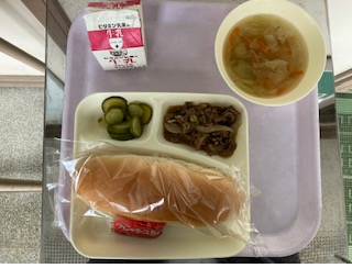 牛肉のデミグラスソース煮 スープ きゅうりのピクルス