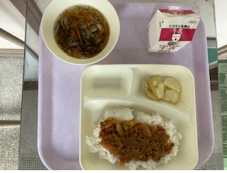 タコライス もずくのスープ 焼きじゃが 牛乳