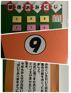 保健室の先生が生徒のみなさんの健康を願って「健康おみくじ」をつくってくださいました。ぜひ、おみくじを引いてください。
