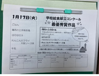 本日の給食の献立は、学校給食献立コンクールで最優秀賞を受賞した作品です。