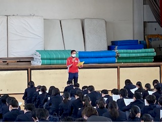 明日が大阪府の私立高校の受験日です。3年生は事前指導を体育館で行いました。