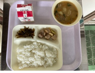 まぐろの甘辛焼き 豚汁 くきわかめのつくだ煮